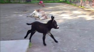 Dans une ferme du Wisconsin, é.-u., un âne fait emballés cercles courir autour de sa mère. Semble infatigable!