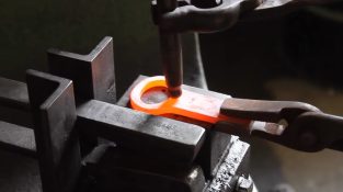 Un forgeron illustre le processus de construction d'un ouvre-porte à la main.