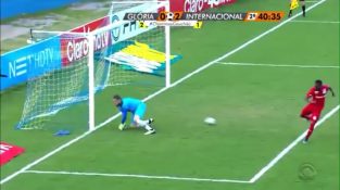 Dans le match entre groupes Internacional et Gloria au Brésil, L'équipe de Internacional a remporté une fusillade. Le footballeur Marquinhos effectue, le ballon frappe séquentiellement et dans deux faisceaux, revenant sur ses pieds, [...]
