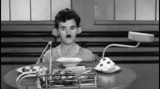 Un extrait du film « Les Temps Modernes » de 1936 avec Charlie Chaplin dans le rôle de « Le Clochard » luttant pour vivre dans la société industrielle moderne avec l'aide d'une jeune femme sans abri..