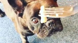 Un Golden Retriever ne laisse pas un Bulldog quitter la maison pour faire ses affaires