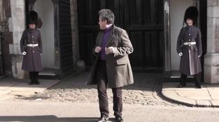 Un Ecossais Garde gardant le St. L’entrée du Palais James s’est mise en colère et a crié après un touriste qui dansait devant lui.ω