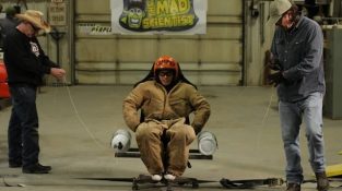 Extrait de l'émission rue Outlaws le canal Discovery Channel, où trois ingénieurs du plaisir avec une chaise de bureau. Deux bouteilles nitro ajusté la chaise, afin de faire tourner à grande vitesse.