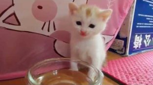 Âgé de trois semaines Ben est juste de trouver comment boire dans un plat. Regardez sa vidéo pour voir sa méthode hilarante adorable!