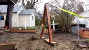 Retrait d'une souche à l'aide d'un camion, sangle de remorquage, chaîne, et l'avantage mécanique.