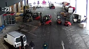 travailleurs d'entrepôt ont capturé des bandits avec leur chariot élévateur