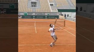 Roger Federer arrête le ballon et le « colle » de manière impressionnante à sa raquette.