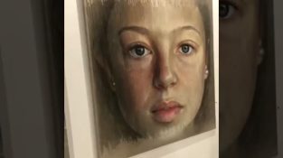Le peintre Sergi Cadenas crée des peintures à l'huile qui se transforment en différentes images, pendant que le spectateur se déplace d'un côté à l'autre.