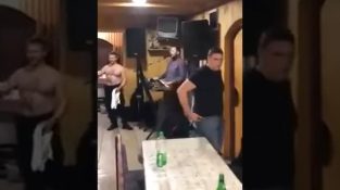 Lors d'un enterrement de vie de garçon en Serbie, un voisin entre dans le bâtiment pour protester contre la musique forte.