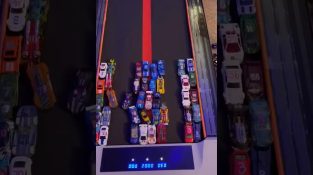 Les petites voitures Hot Wheels participent à une grande course de vitesse sur un tapis roulant. Qui réussira à finir;