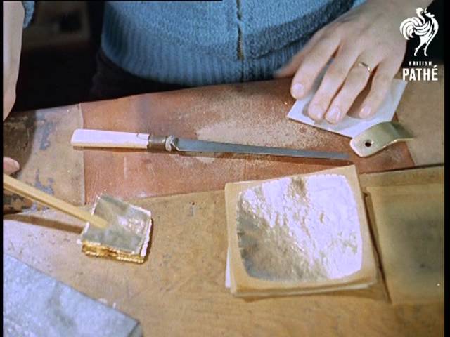 תהליך יצירת עלה זהב דק במיוחד בשנת 1959. העלה זהב המשמש אובייקטים הזהבה.