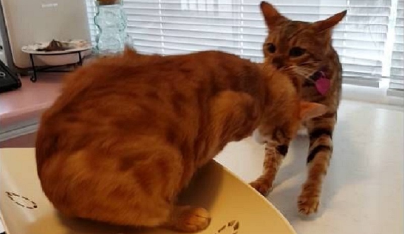 חתול עוזרת לחברתה לעזוב arpazontas וטרינר בצוואר עם הפה שלה, ומושך לכיוון הבסיס תיק של idioktitrias שלהם. הכספת עכשיו, שניהם לחזור הביתה.