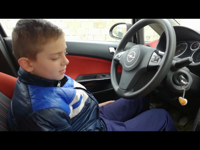 ליד הגה מכונית אופל תוך רשמה וידאו מאבא, בן ה 12 מתיאס מצרפת, מעביר קדימה כדי להוביל בגן. אבל את ההצגה לא תהיה סוף טוב, כמו הילד הקטן ייפול על דלת הזכוכית של הבית. אמו מיד התחילה לצעוק: 'עלית לי על העצבים עם השטויות שלך!'.
