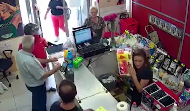 שודד נמצא בצרות שלו כשניסה לגנוב סופרמרקט קטן בסביליה, ספרד. קשיש ואישה תקפה בעזרת עוברי אורח אחרים הצליחו לנטרל אותו.