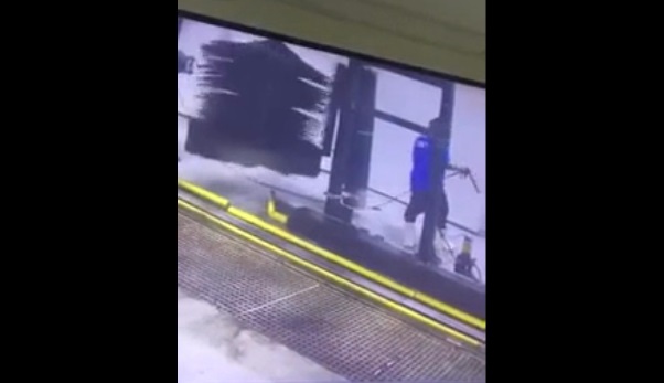 עובד בשטיפת מכוניות תהיה תאונה קטנה, כמו הצינור מן הלחץ של המים שמחזיק מסתבכים עם מברשת Auto-סיבוב.