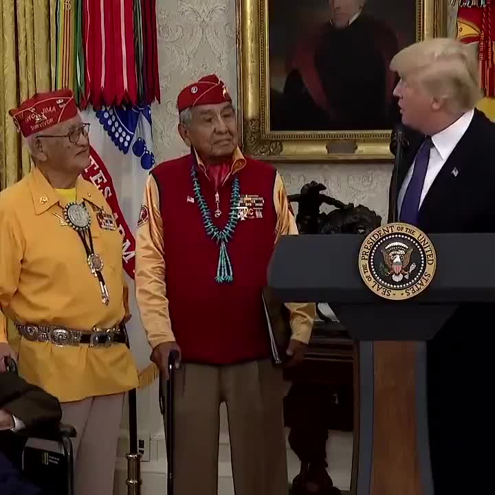 Pres. טראמפ במהלך אירוע לכבוד דברנים קוד אינדיאנים: 'היית כאן הרבה לפני שמישהו מאיתנו היה כאן - למרות שיש לנו נציג בקונגרס שלדבריהם היה כאן לפני הרבה זמן. הם קוראים לה פוקהונטס.'