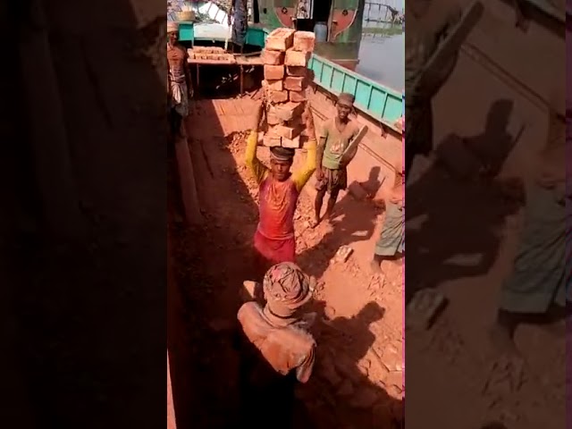 עובד נושא מספר מרשים של לבנים על ראשו.