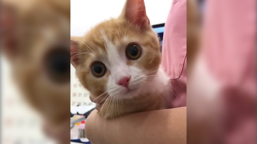 מונצ'קין, חתלתול חמוד מיפן, גורם החיסון הראשון שלו לווטרינר.