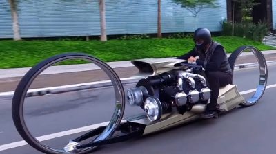 נהג ותיק של F1 Tarso Marques בנה את TMC דומון, יש אופנוע מאולתר גלגלי עיצוב מרשים ללא צירים, ומופעל על ידי מנוע של מטוס. צפו כפי שהוא נע ברחובות ברזיל.