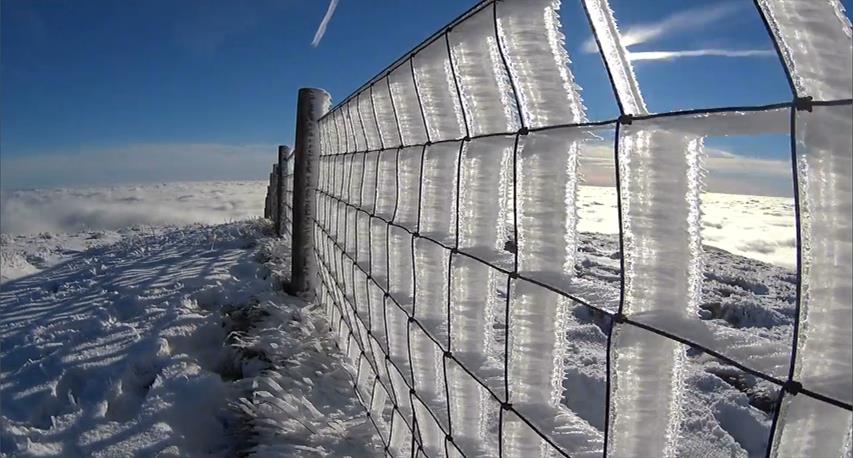 היווצרות הקרח המרשימה על הרשת של גדר, גבעות Ochil בסקוטלנד.