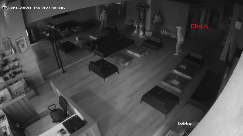 גנב נכנס למסעדה, הוא רואה את השתקפותו במראה גדולה והוא פועל.