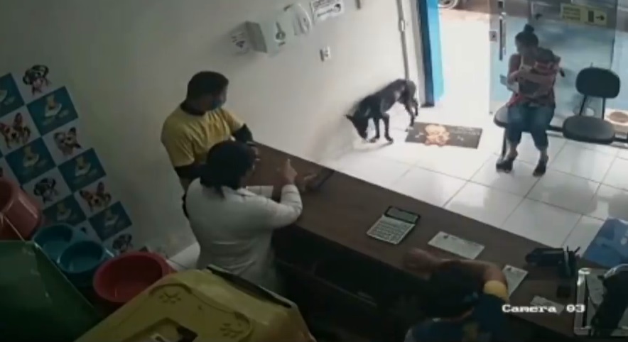 כלב משוטט פצוע נכנס לבד במרפאה וטרינרית בחואזיירו דו נורטה, ברזיל, ומחכה בסבלנות לווטרינר שיעזור לו.