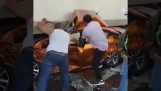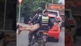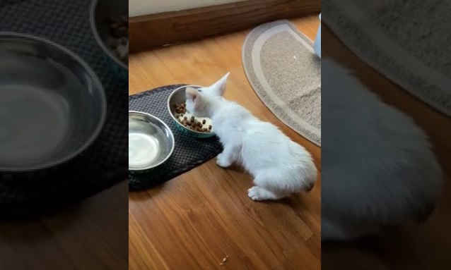 במקסיקו, ארצ'י החתול הקטן אוכל את ארוחת הבוקר שלו ומדבר עם בעליו.