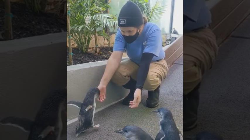 בגן חיות, פינגווין שמח במיוחד כשהוא פוגש וטרינר.