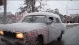 ברוסיה, מישהו משתמש גרזן מוט כדי לפתוח דלת הרכב הנעול