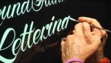 קליגרף מעצב כמה לוגואים מפורסמים בעזרת מברשת.