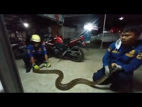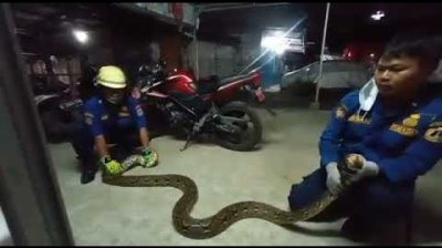 באזור Kramat Jati באינדונזיה, כבאים הוזעקו להסיר פיתון גדול המסתתר בתקרת בית.