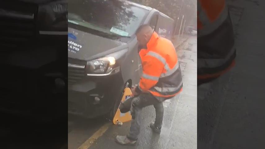 אירלנד, מנעול גלגל מחובר למשאית של פועל בניין, אבל בסופו של דבר זה לא מאוד יעיל. האיש ישתמש בגלגל כדי לחתוך את המנעול תוך שניות.