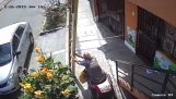 ברחוב ברזילאי, אדם נושף בקול רם בצופר, וקבצן בכיסא גלגלים נרפא מאימתו.