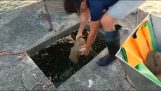 חתולה נבהלת כשילד קטן ניגש אליה לשחק איתה.