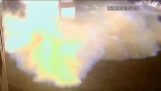 בישראל, נהג מסתובב עם ידית והצינור ממשאבת דלק במיכל שלו.