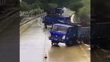 ברחוב סין, מיקסר נמנע להתבטל בקצרה בתעלת כביש. למרבה המזל סופרמן ...