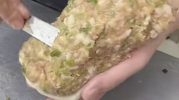 שף מראה לנו כיצד מתמלא באוזי. הרום (לחמניה ממולאת מאודה) זה לחמניה סינית קטנה ממולאת במילוי מלוח (בשר, ירקות וכו '). המאמץ נראה בלתי אפשרי לאור כמות המילוי ביחס לגודל הלחם.