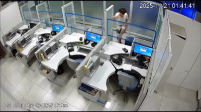 ביום שישי, 21 בנובמבר, 2025, גבר בן 20 נעצר מוקדם הבוקר לאחר שנמצא בתוך סניף בנק פדרלי Caixa Economica במרכז קרנגולה בברזיל. האבטחה התקבלה לאחר הפעלת אזעקת הבנק. חברת האבטחה בדקה את מצלמות הבניין והבחינה באדם נע בתוך הסניף, וכתוצאה מכך קריאה מיידית של המשטרה הצבאית. הם רק הגיעו, השוטרים החלו לחפש במקום והבחינו כי נגרם נזק למסוף כספומט. אחרי כמה דקות של מחקר, הצעיר נצפה מנסה להתחבא מתחת למדרגות המובילות לקומה העליונה. לפי המשטרה הצבאית, הצעיר נראה מנומנם והתקשה לדבר. הוא כבר היה מוכר למשטרה מאירועים נוספים, ונלקח לתחנת המשטרה שם ייבדק המקרה.
