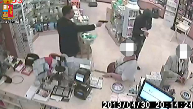 שלושה אנשים מנסה לשדוד בית מרקחת בעיר של Cerignola, איטליה, אבל עבור מזל רע שוטר שוכב שם כלקוחה שלהם עוצר ו לוכדת את אחד מהם.