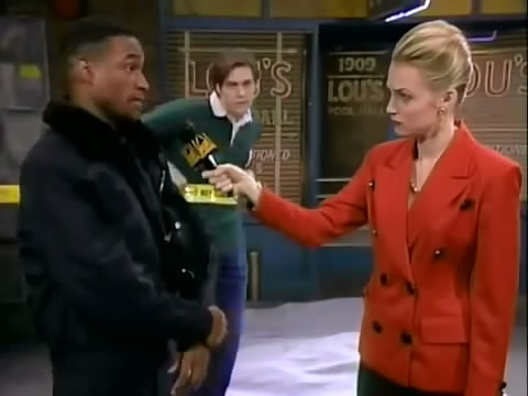 מובאה מתוך הסדרה 'צבע חי', עם ג'ים קארי מייצג עובר אורח שרוצה לגנוב פרסום מועט במהלך הכתבה בטלוויזיה.