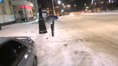 נהג אודי S5 ברוסיה מאבד שליטה על הרכב, תוך כדי תנועה במהירות גבוהה על הכביש הקפוא.