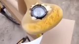 איש היער האמיתי חוזר הביתה עם צרור הבננות שלו וסנאי המחמד שלו...
