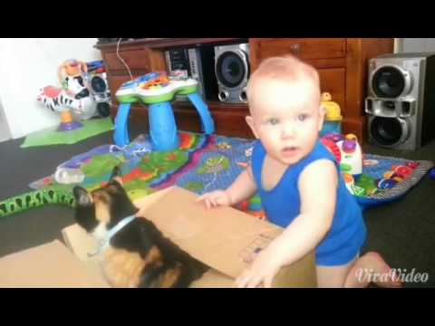 חתול קופץ מתוך קופסת אשר מסיח תינוק...
