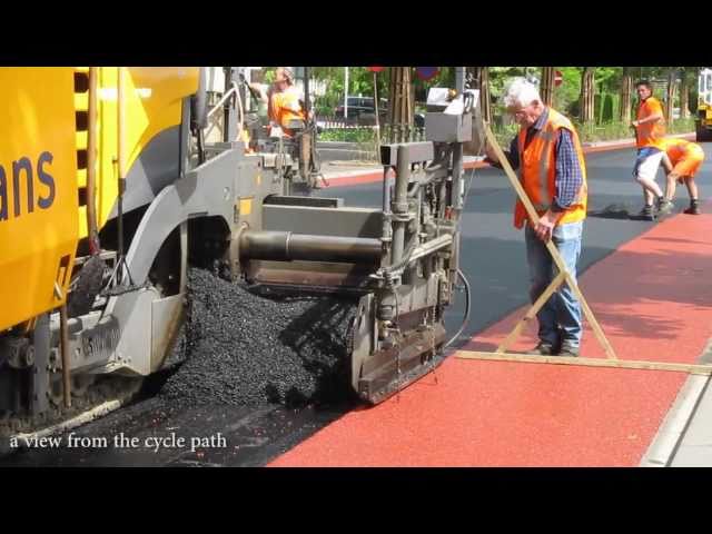 שבילי אופניים בהולנד אדומות, כמו שטיח לרוכבי. זה לא פשוט דרך החתיכה האדומה, זוהי שכבה עבה של אספלט אדום מאוד חלקה. סרטון וידאו זה מראה הקמת שביל לאופניים עם כביש בסלון העיר Bosch. ארבע מכונות לנוע על הכביש, שני אספלט נתיבי אופניים אדומים ושני עם ביטומן שחור רצועות של כלי רכב. באותו ערב של קווים לבנים על פסים, למחרת מכוניות ואופניים תזיק כביש נורמלי.