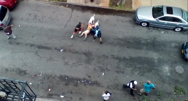 המקומיים ינסו להתערב, אבל הכלבים ואז יהפוך נגדם. האיש שהיה בתחילה ההתקפה של שני כלבים, הוא מכוסה בדם אך הצליחו לקום ולעזוב. בסוף הסרטון, אתה עדיין יכול לראות את אחד הכלבים לצוד מישהו. בסופו של דבר, שני כלבים מסוממים עם כדורי הרגעה, הבעלים נעצר.