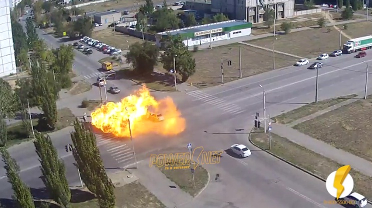מכונית מתנגש עם מיניבוס עם eygraeriokinisi בצומת אחד Volzhsky העיר ברוסיה. למיכל הדלק ברכב משעמם ו- LPG הציתו מעט שמפגיעתו נהרג הולך רגל.