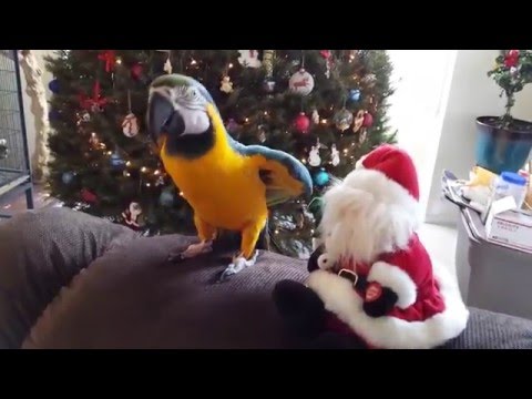 התוכי חולה של סנטה גונבת את ההצגה על ידי שרים שירי חג המולד.