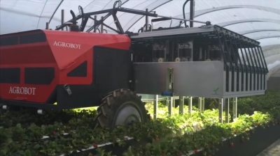 המכונה אגרבוט המופרע התותים בחממה בקליפורניה.