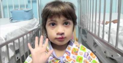 ילדה קטנה מברזיל עם מלא cheiloschistia (האף.), נעשה ניתוח עם העזרה של חיוך פעולת הארגון החושפת את החיוך היפה.