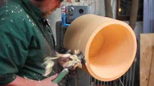 ברגר Sören הנגר מראה לנו הבנייה של מנורת שולחן עץ, שימוש בבול עץ אורן. אורן קיצץ כבר להסקה, לא לענין זה לבנות.